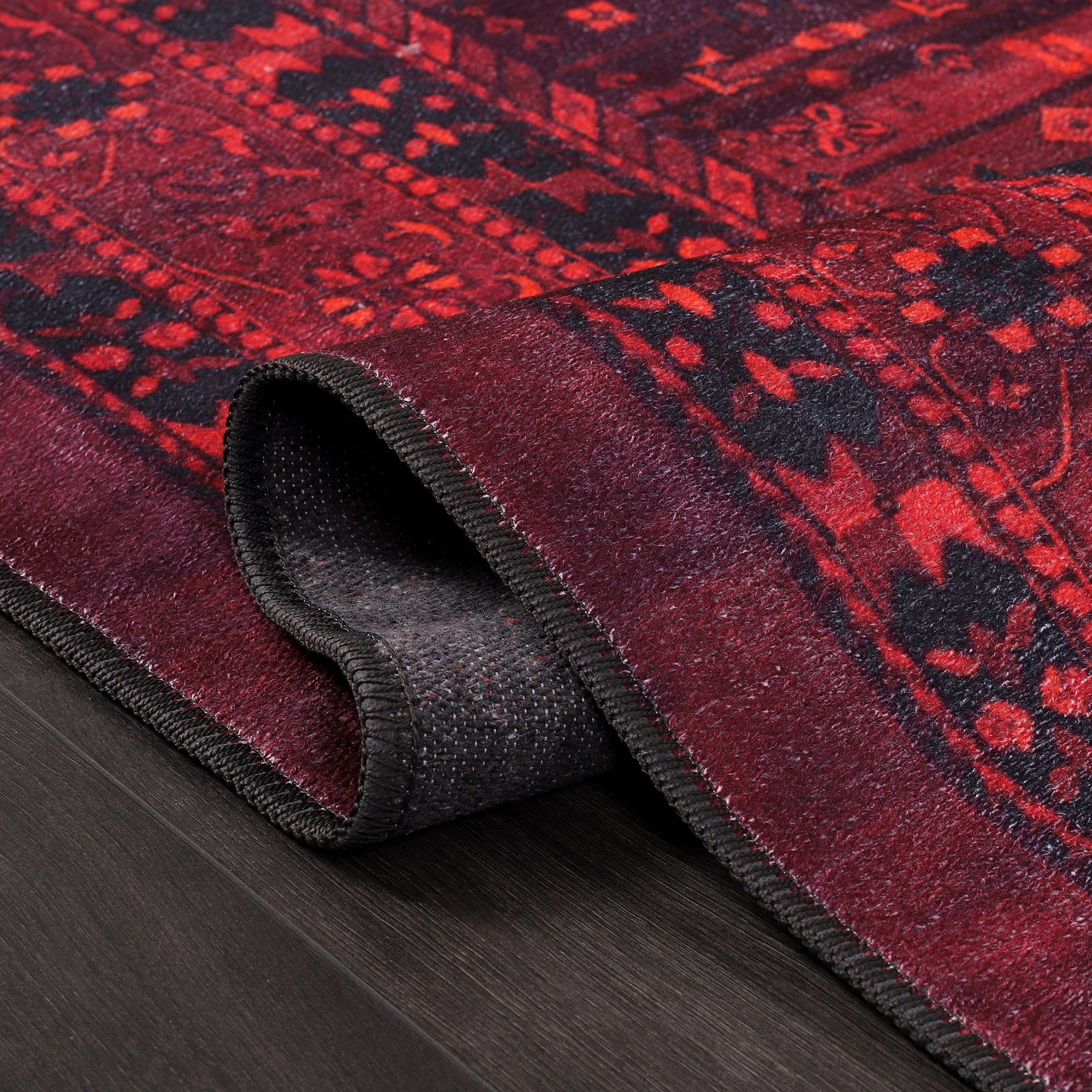 The Rugs Depot RW1009 Machine Washable Red Tribal Medallion Rug celebrates the timeless artistry of tribal weaving traditions, blending them with the comfort and practicality required in modern homes. Its striking diamond-shaped medallion motifs framed by intricate borders create a powerful focal point that adds warmth and character to any room.